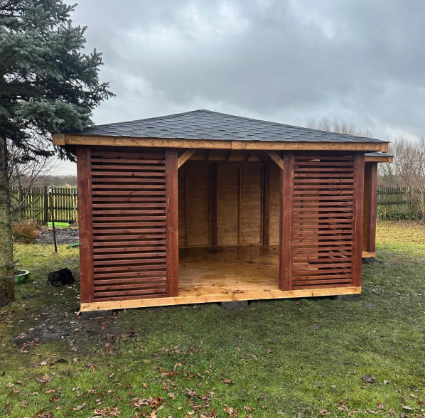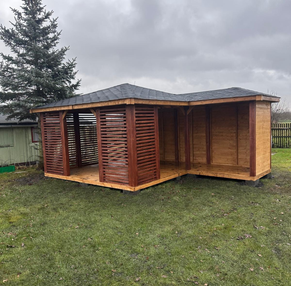 Altana z miejscem na grilla Miranda została zaprojektowana z myślą o miłośnikach grillowania. Wydzielona przestrzeń pozwala wygodnie przygotowywać posiłki na świeżym powietrzu, a zadaszone i osłonięte ściany zapewniają ochronę przed wiatrem i deszczem. Ciepła kolorystyka drewna tworzy przytulny klimat, idealny na rodzinne biesiady i spotkania z przyjaciółmi. To idealne rozwiązanie by cieszyć się grillowaniem w każdą pogodę.