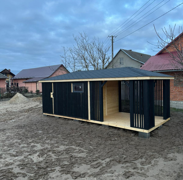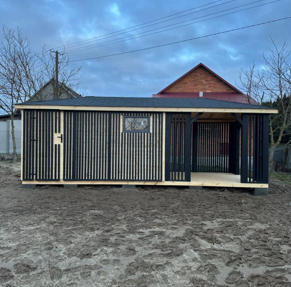 Przedstawiamy Państwu nowoczesny domek z altaną – idealne połączenie funkcjonalności z przestrzenią do wypoczynku i relaksu. Malowanie w kolorze jasnej sosny nadaje naturalny charakter, a czarne akcenty podkreślają elegancję i nowoczesny design.