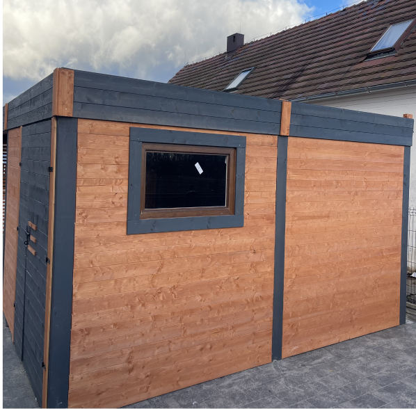 Wiata Leonardo z pomieszczeniem gospodarczym to funkcjonalna konstrukcja o minimalistycznym designie. Płaski dach nadaje jej nowoczesny charakter.